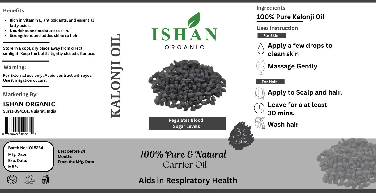 Kalonji oil, also known as black seed oil, is extracted from the seeds of Nigella sativa. Rich in antioxidants, essential fatty acids, and bioactive compounds like thymoquinone, it offers powerful anti-inflammatory, antibacterial, and immune-boosting properties. Kalonji oil is widely used for promoting hair growth, improving skin health, supporting digestion, and enhancing overall well-being. It is a traditional remedy in Ayurveda and Unani medicine for various health benefits.