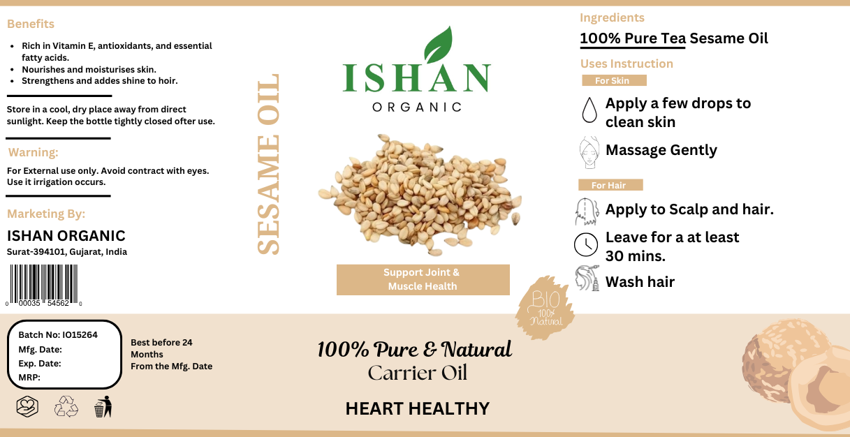Sesame Oil – 100% pure and natural, rich in antioxidants and essential nutrients.